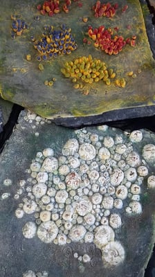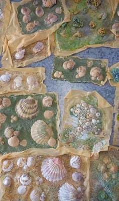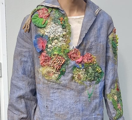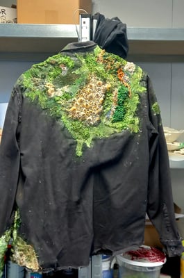 Conception technique et mise en oeuvre du matiérage des costumes recouverts d'algues , coquillages, mousses, etc..