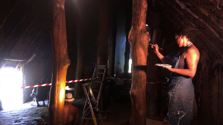Tournage dans une maison du néolithique à Samara.