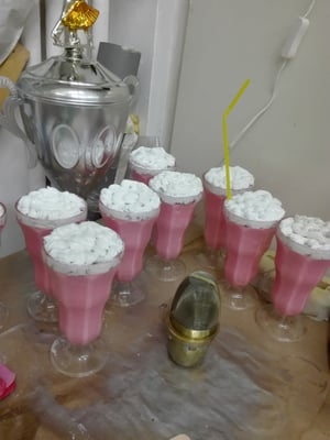 Reproduction d'un salon 1950 vu par un enfant de 4 ans le jour de son anniversaire.