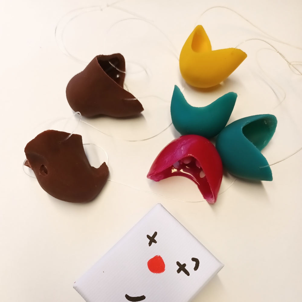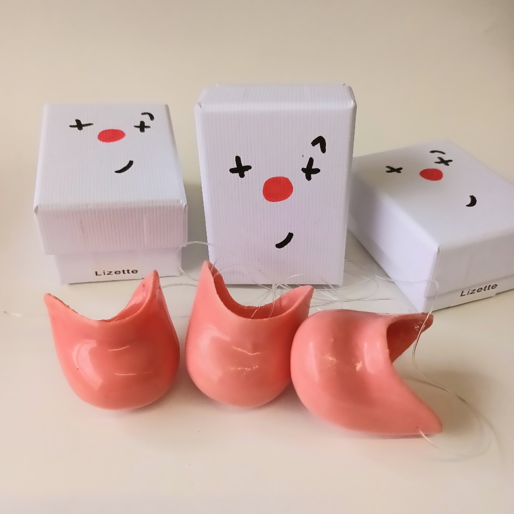 Les nez de clown sans fil se fixent avec un anneau ouvert : le SEPTUM (cf mode d'emploi)
