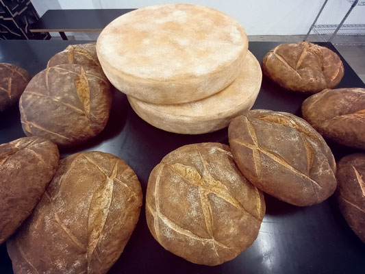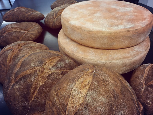Miches de pains et tommes de fromage (Comté) factices
