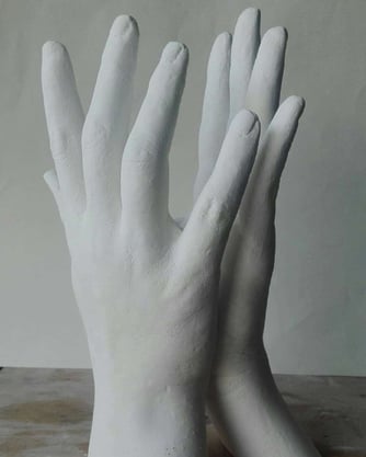 Je vous propose de mouler vos mains en plâtre céramique (plâtre très solide et très fin) afin d'obtenir une véritable sculpture, reproduction parfaite de vos